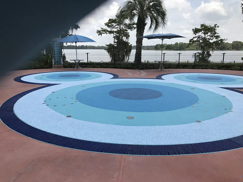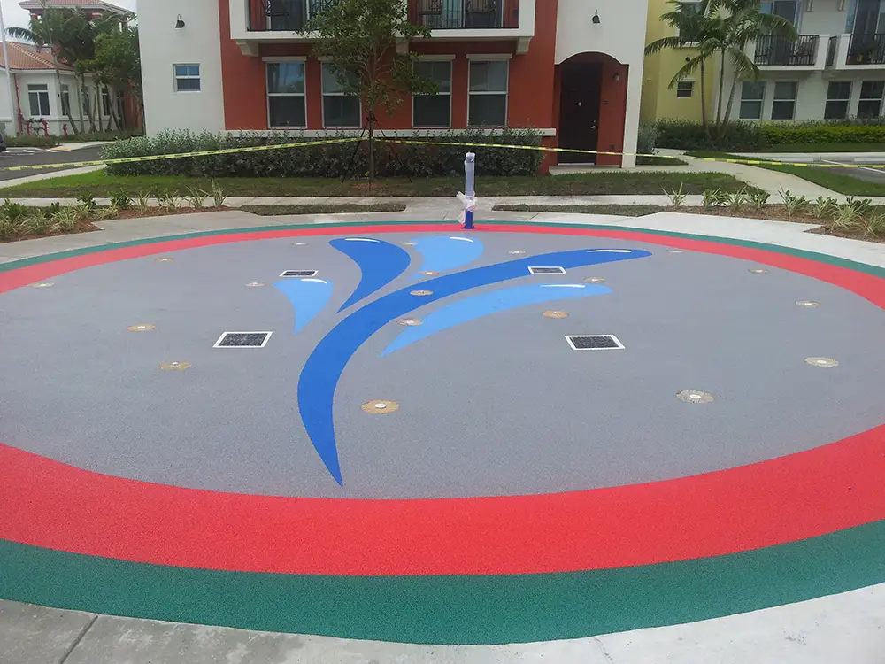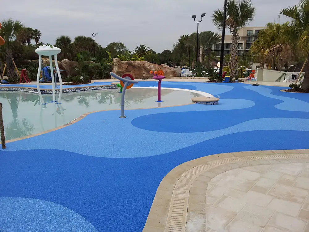For homeowners, we design and install poured-in-place rubber and epoxy stone surfaces for pool decks, patios, and entryways—creating environments that are safe, beautiful, and easy to maintain. For commercial properties, we design and install splash pads, pool decks, play and recreation areas in theme parks, resorts, hotels, HOAs, condos, and schools.